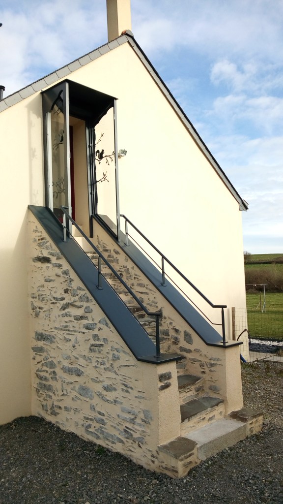Escalier peu encombrant. personnalisable avec des marches en tôle plate, marches en tôle pliée( avec ou sans marches en bois), avec ou sans limon extérieur et le choix de la couleur.